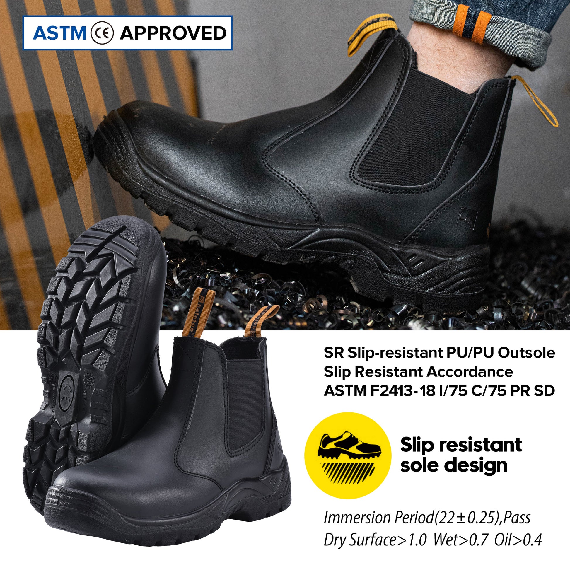 La suela antideslizante de PU/PU es robusta y resistente a la abrasión. Supera la prueba de resistencia al deslizamiento SRC.