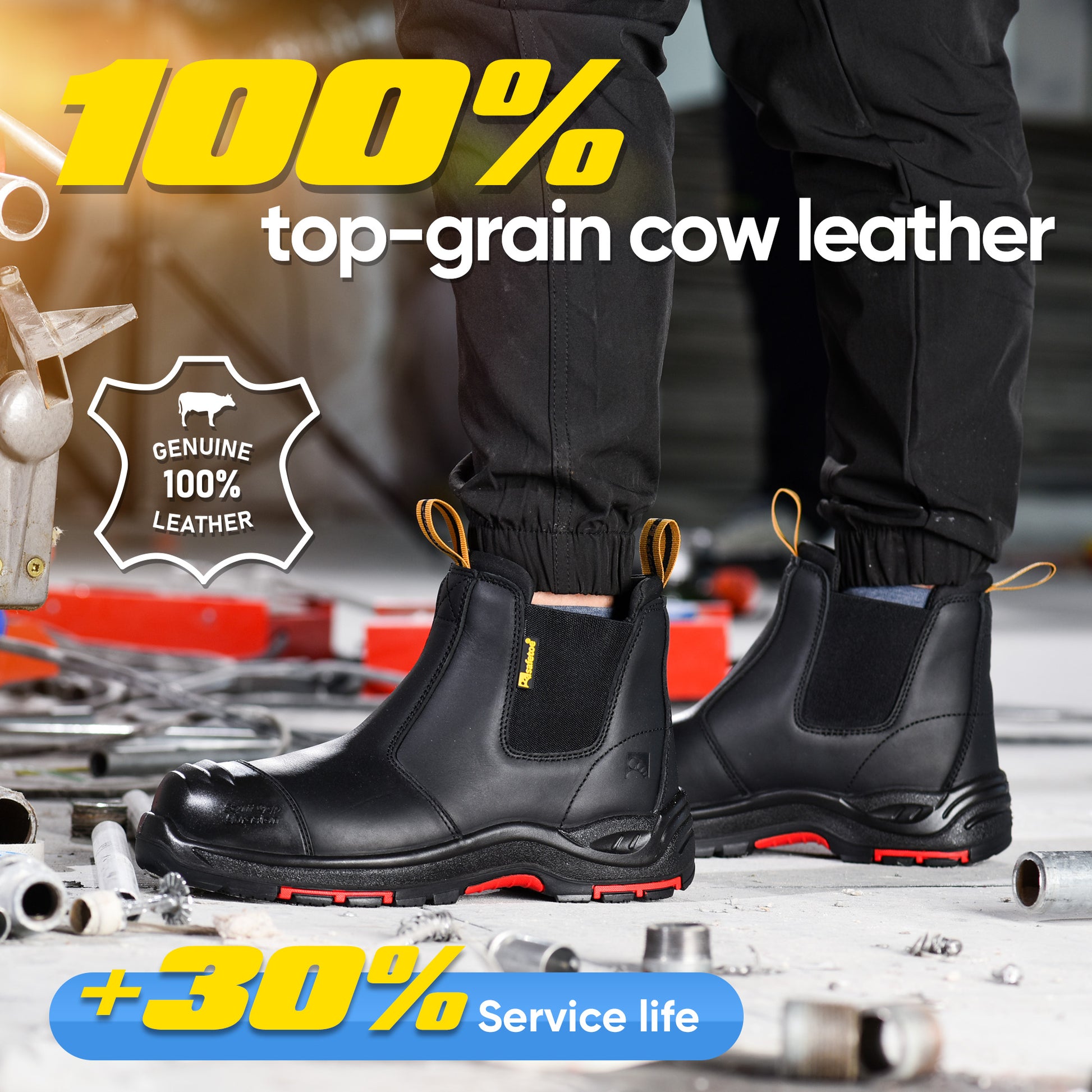 Safetoe Black Leather Composite Toe Work Boots – Slip-Resistant, 18kV EH Rated, Anti-Puncture