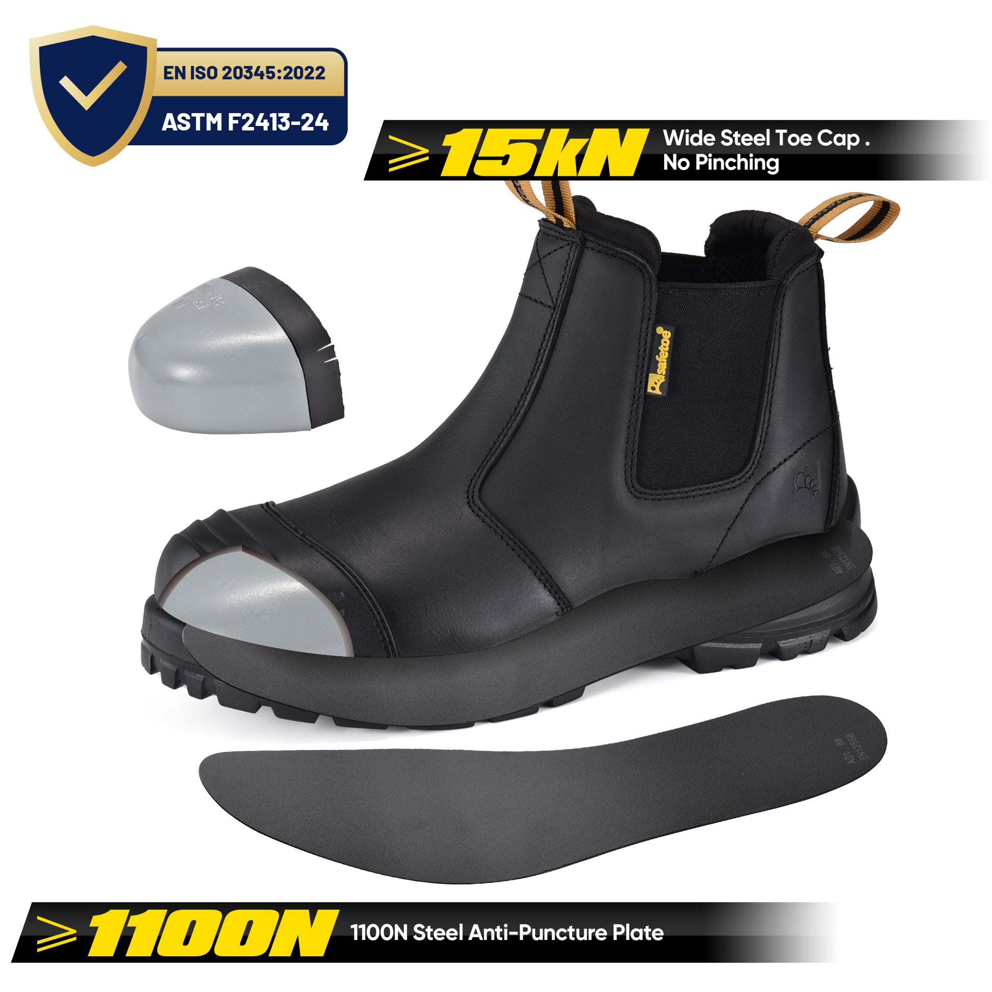 Safetoe Steel Toe Chelsea Work Boots – S3 Safety, Ladder Grip & Slip-Resistant Outsole, ASTM Certified (Black)