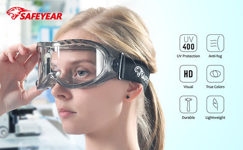 Gafas de seguridad antivaho SAFEYEAR - SG007 HD resistentes a rayones para hombres y mujeres, protección VU sobre gafas de trabajo para bricolaje, laboratorio, soldadura, pulido y química.