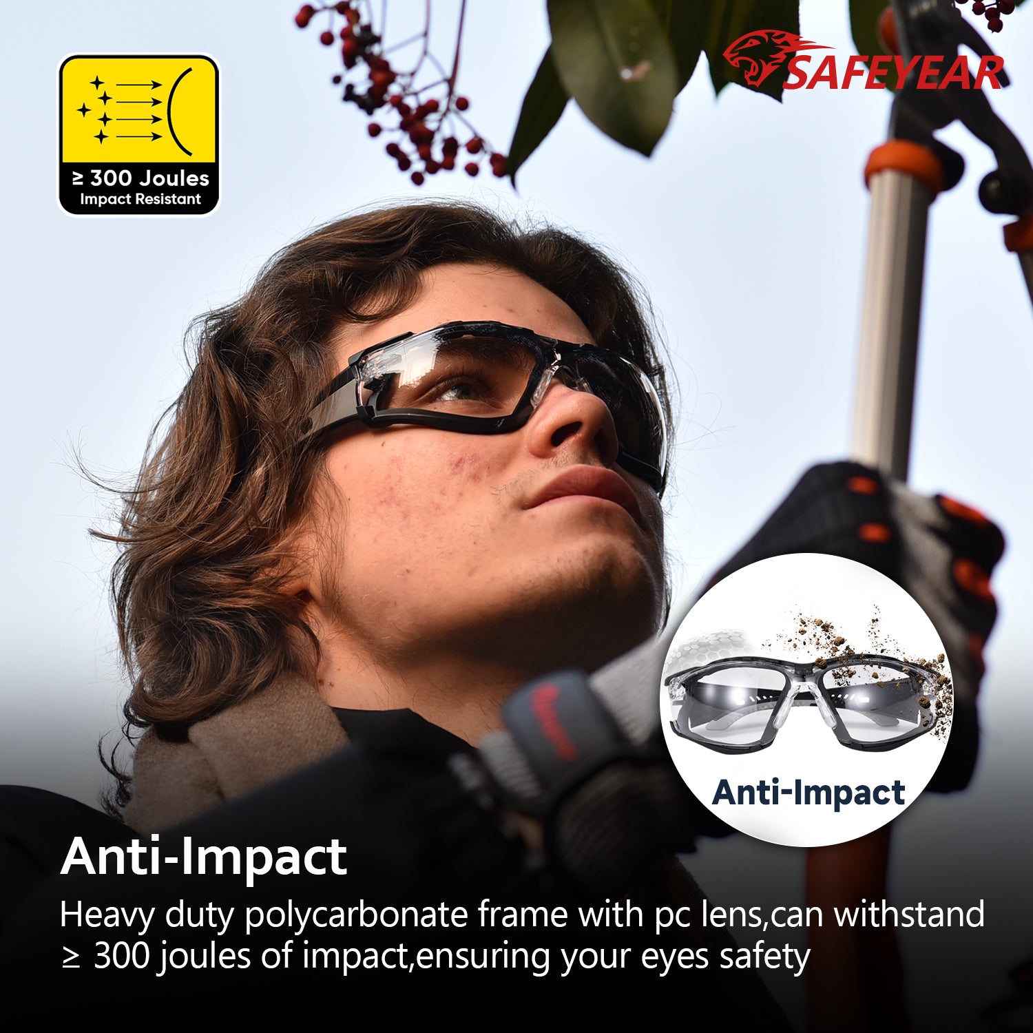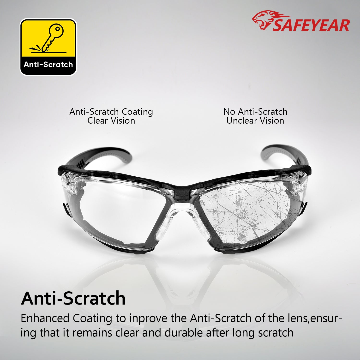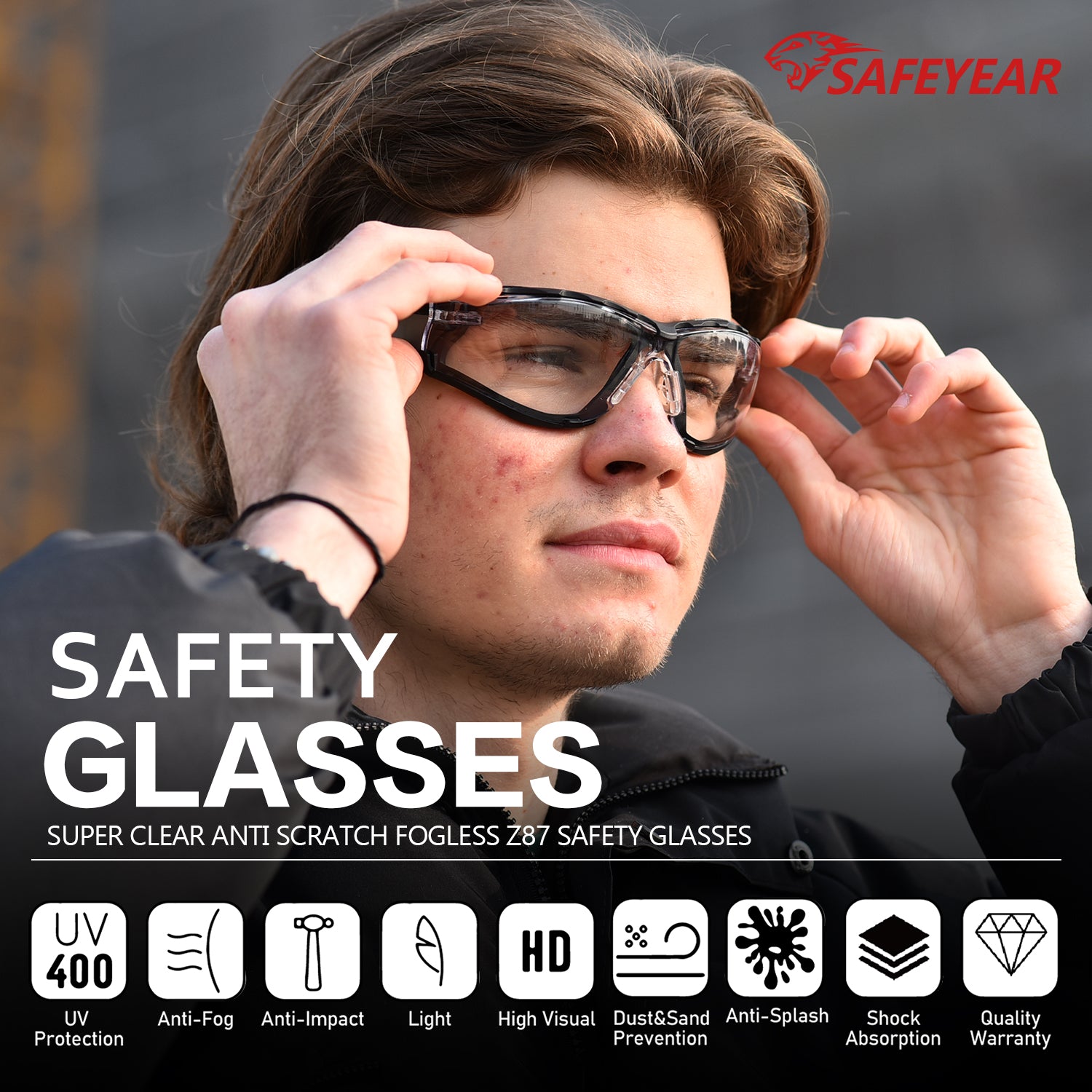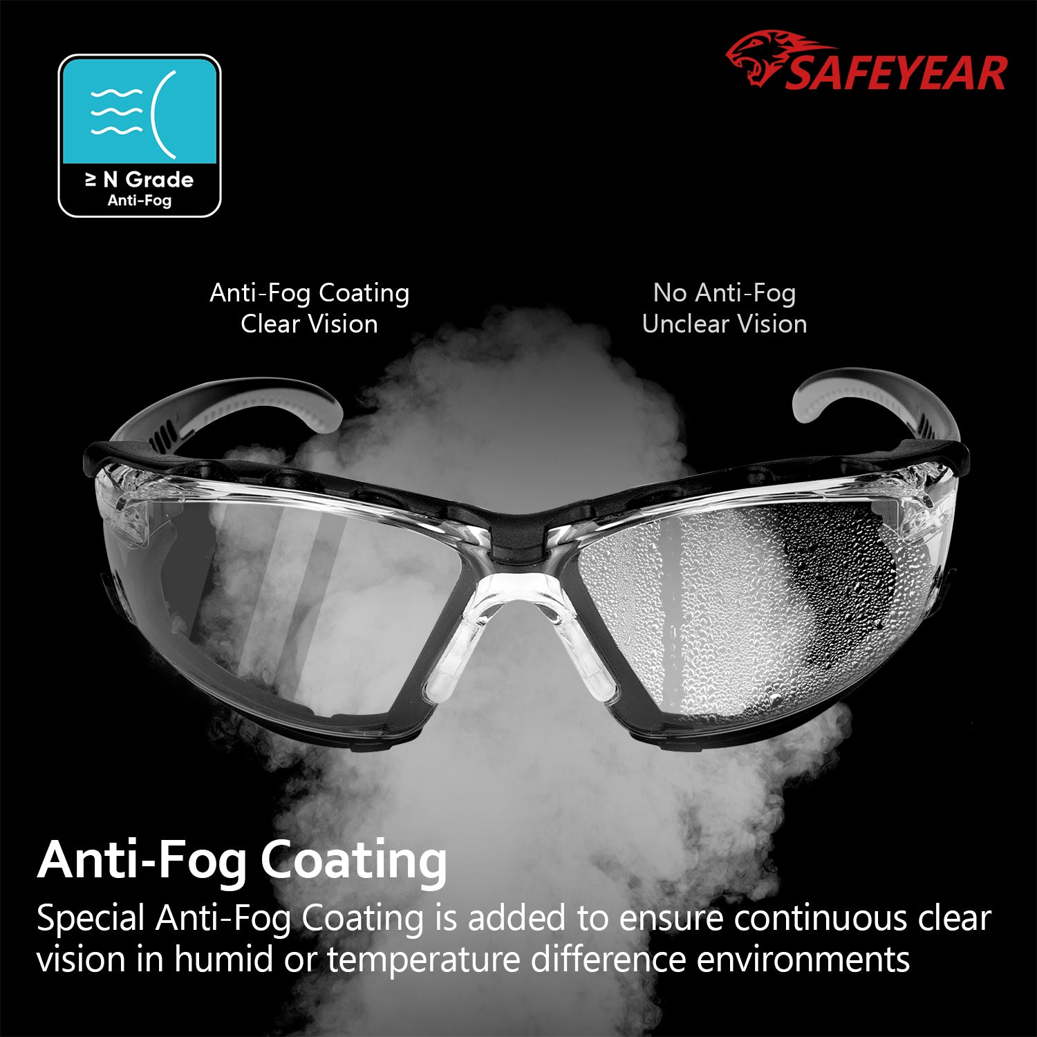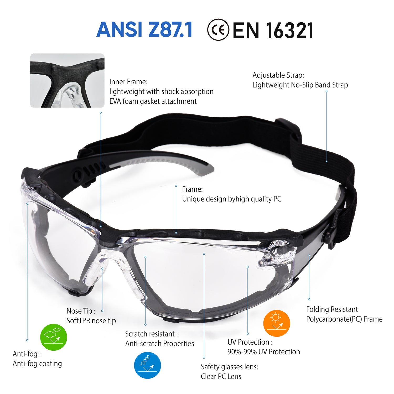 ANSI/EN16321 Certified Safety Glasses – Anti-Fog, Scratch Resistant, Clear Lens + Head Strap