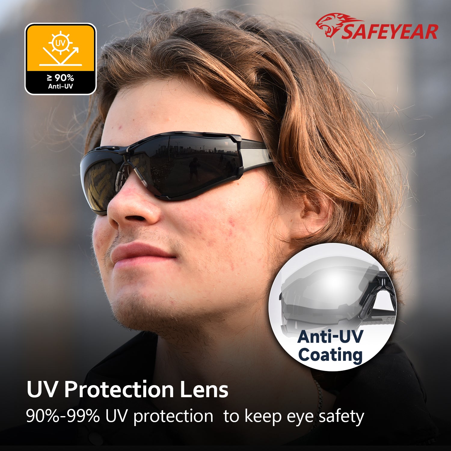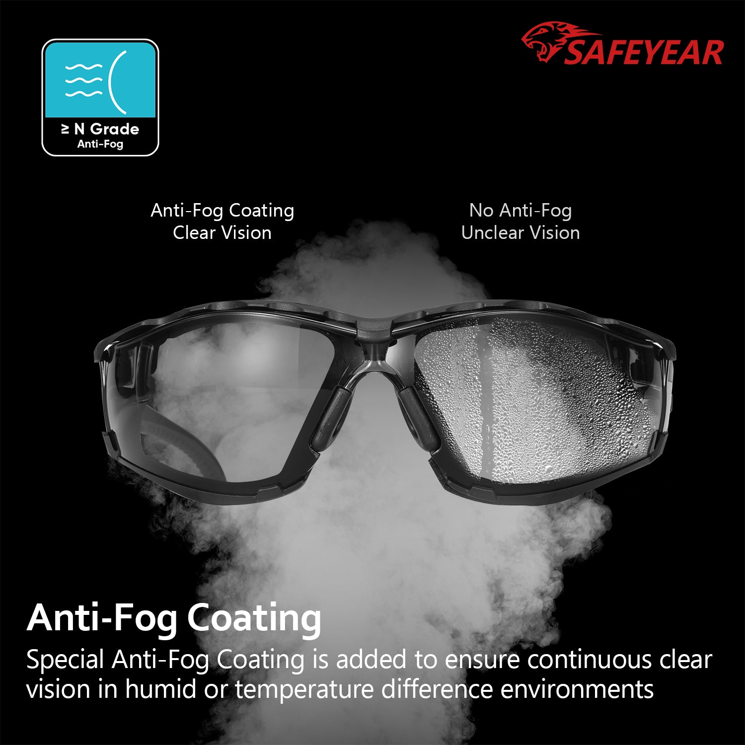 2️⃣ Sun Glare Killer - Dark gray tinted lenses reduce 90% glare + anti-fog coating for bright outdoor work.