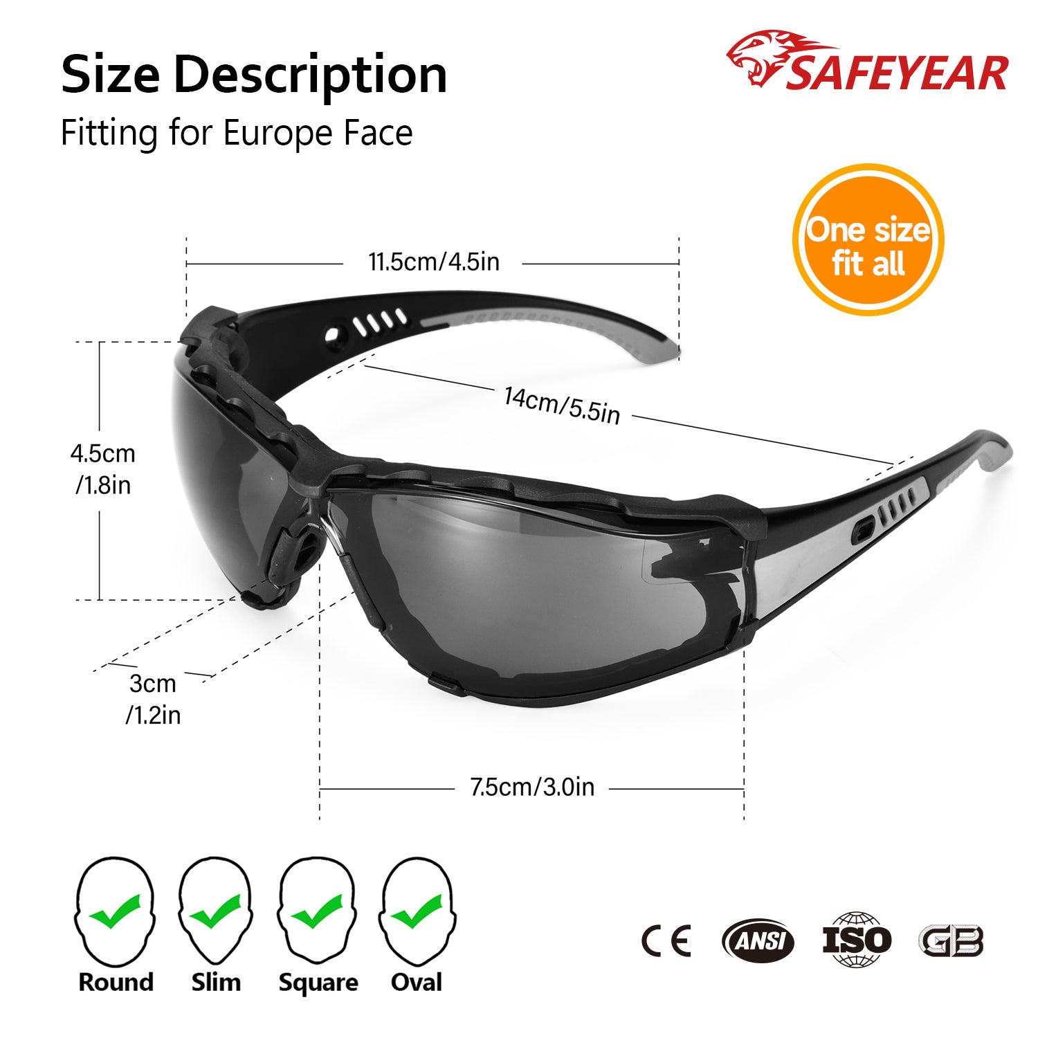 ANSI & EN166 Safety Sunglasses - UV400 Tinted Lens, Free Head Strap Included