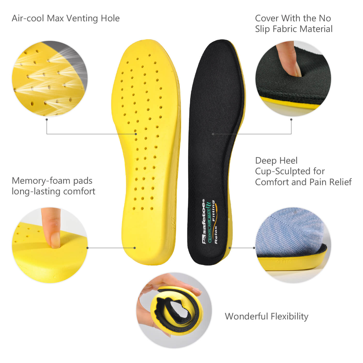 360° u-design work shoes boots soft insoles for men & women, keep your feet stable and super comfortable.