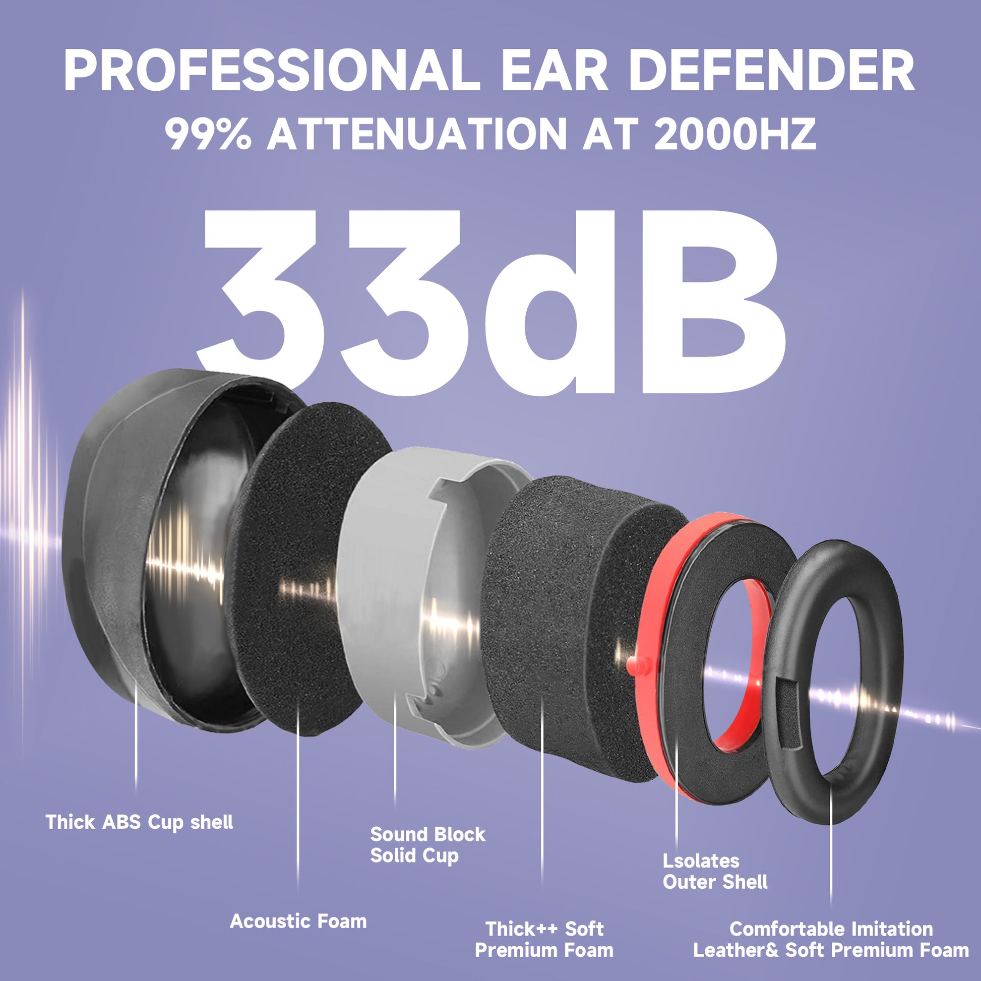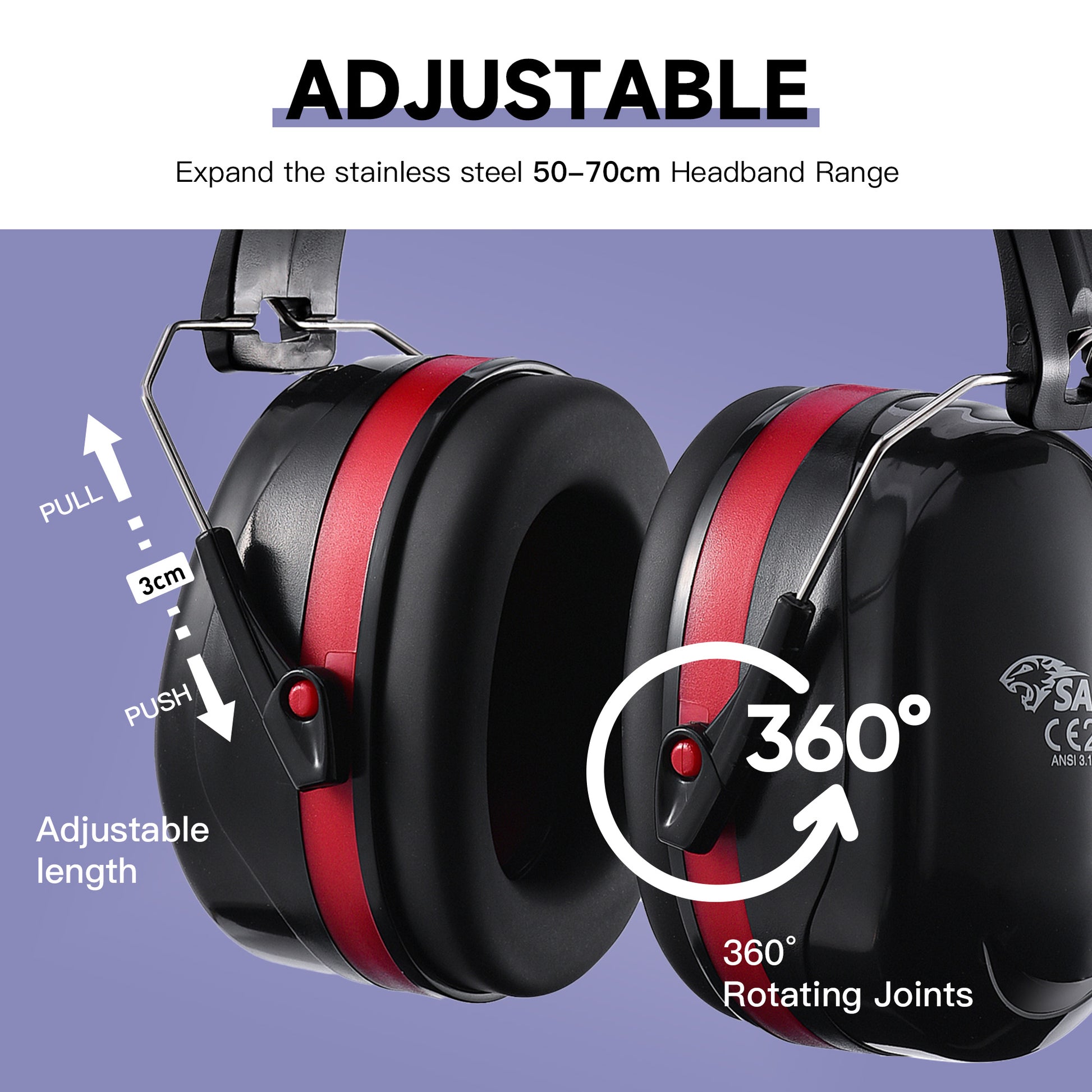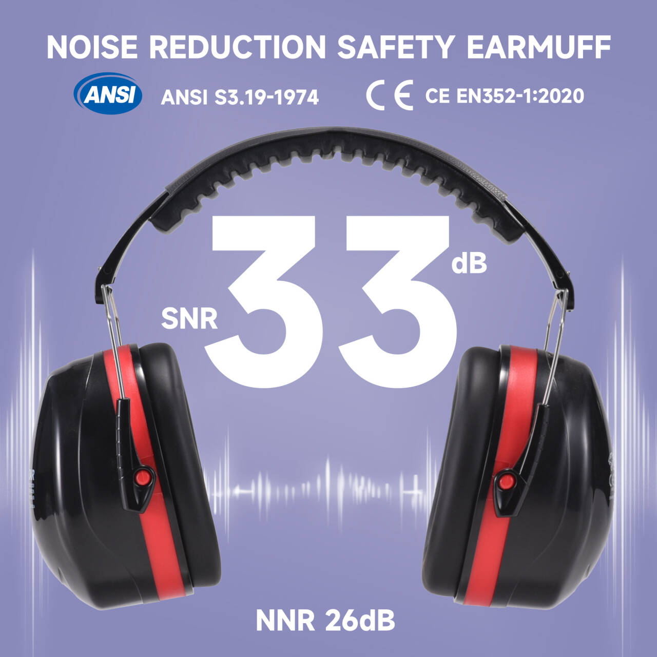SAFEYEAR Maximum Noise Blocking Earmuffs – 33dB Reduction, ANSI S3.19 & EN352 Certified, Comfort Fit