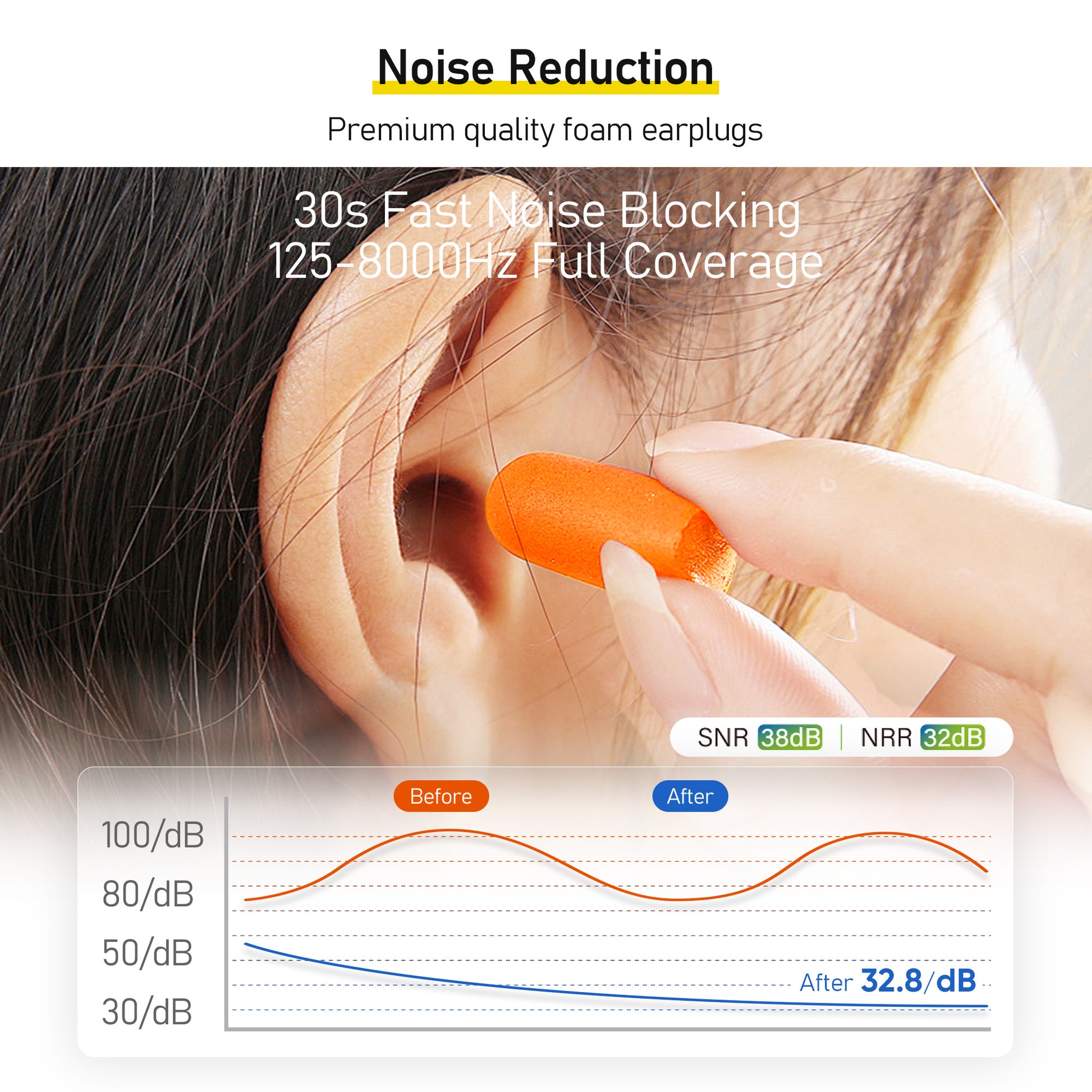 SAFEYEAR QuitePiece PU Foam Earplugs – 38dB Noise Reduction, Slow Recovery for Sleep, Work & Travel
