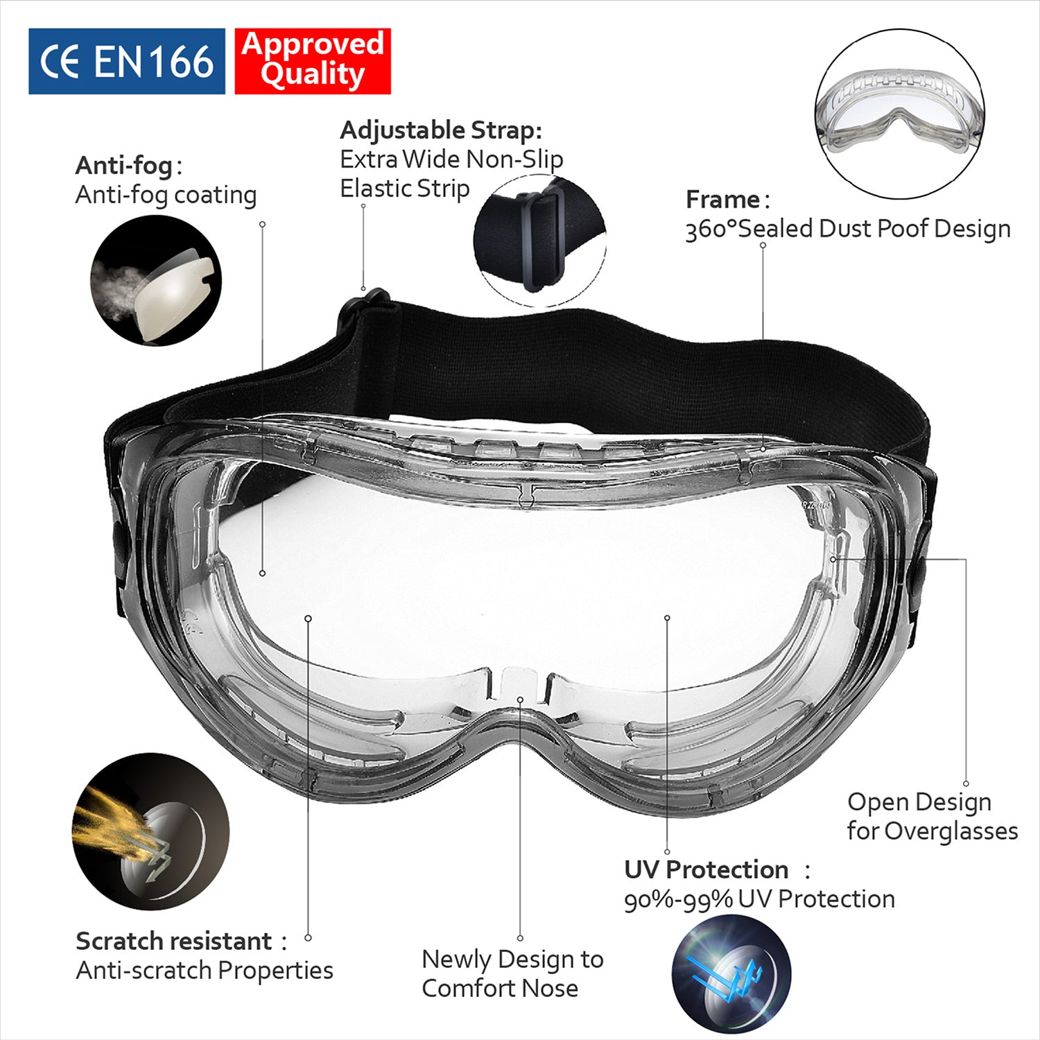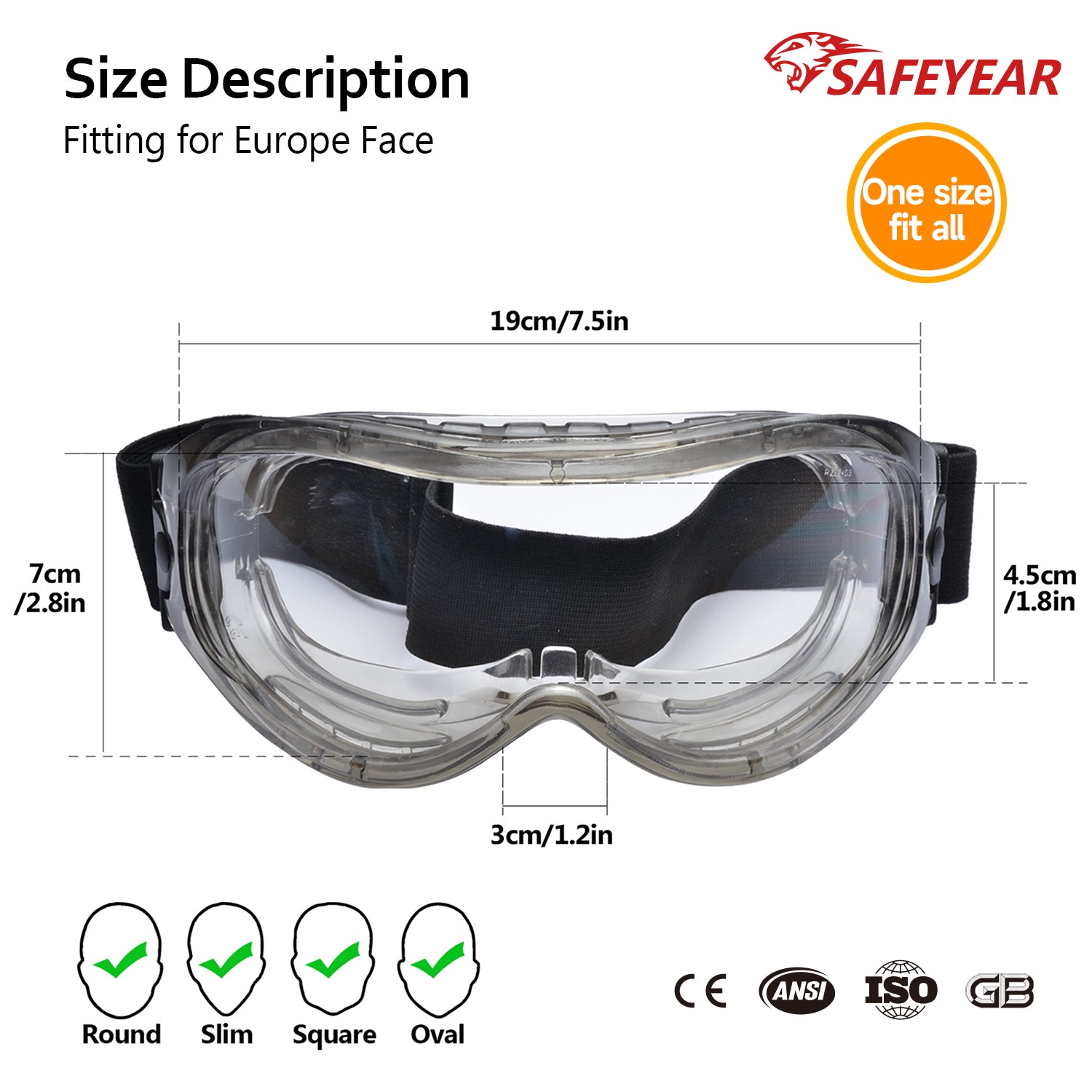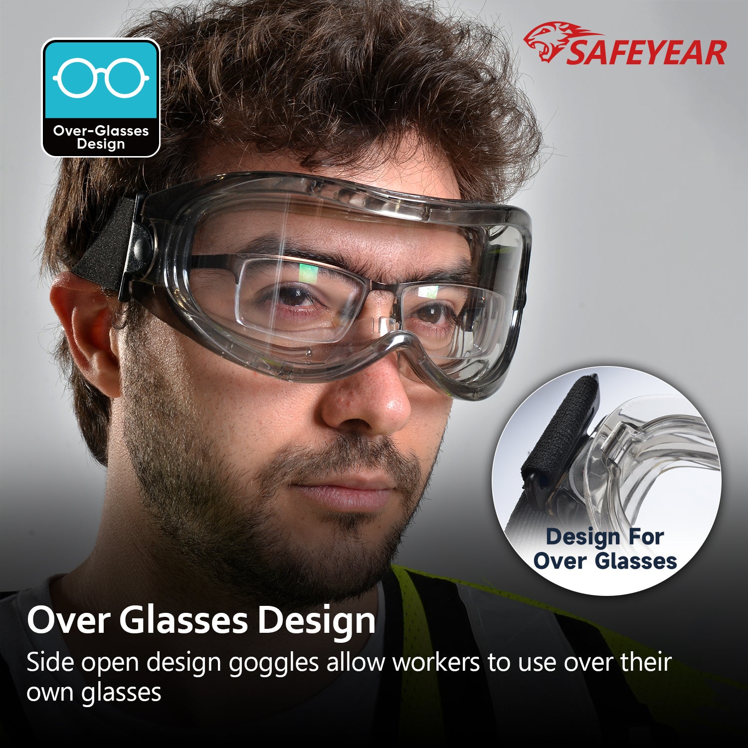SAFEYEAR SG007 Anti-Fog Safety Goggles – HD Scratch Resistant Lens, UV Protection, Over Glasses