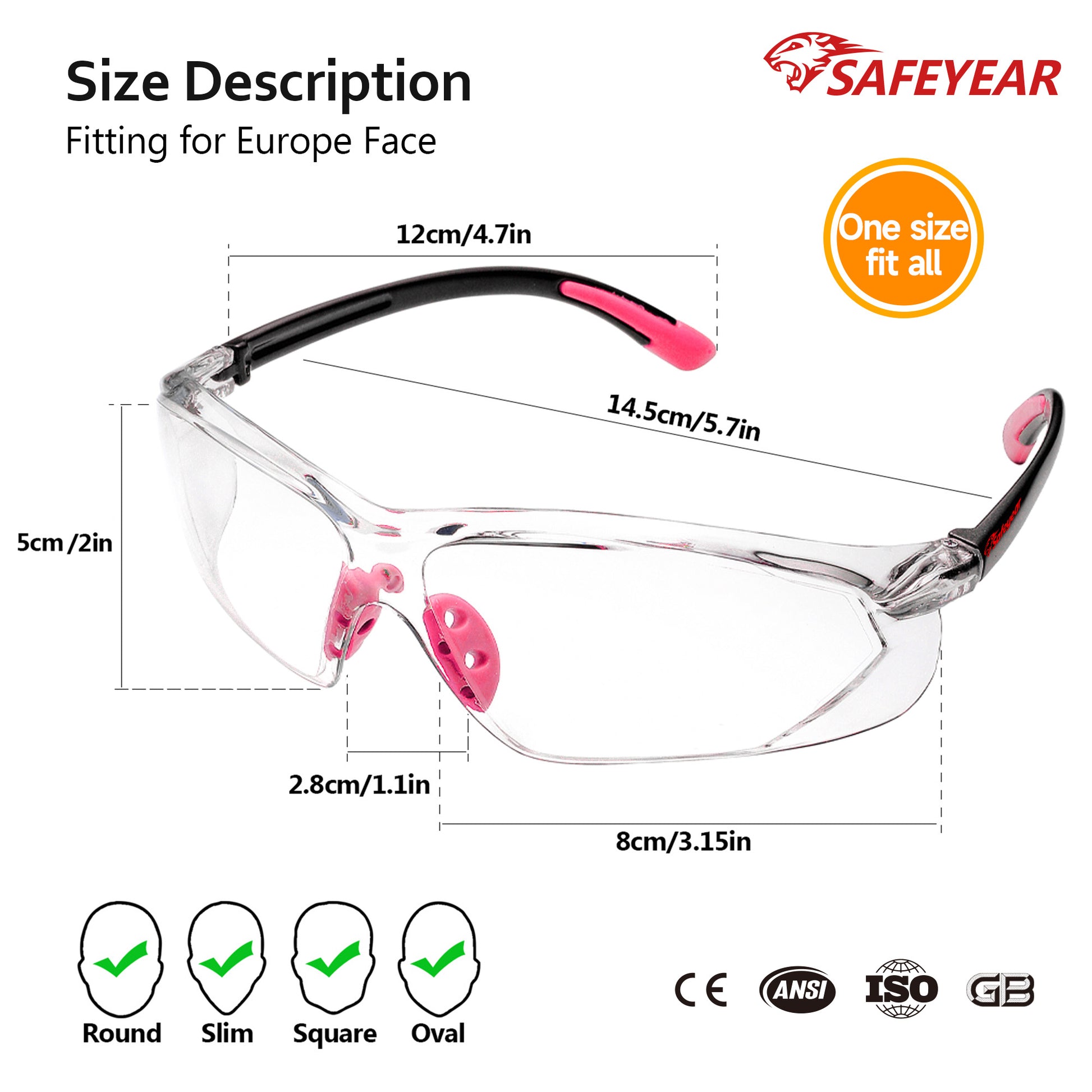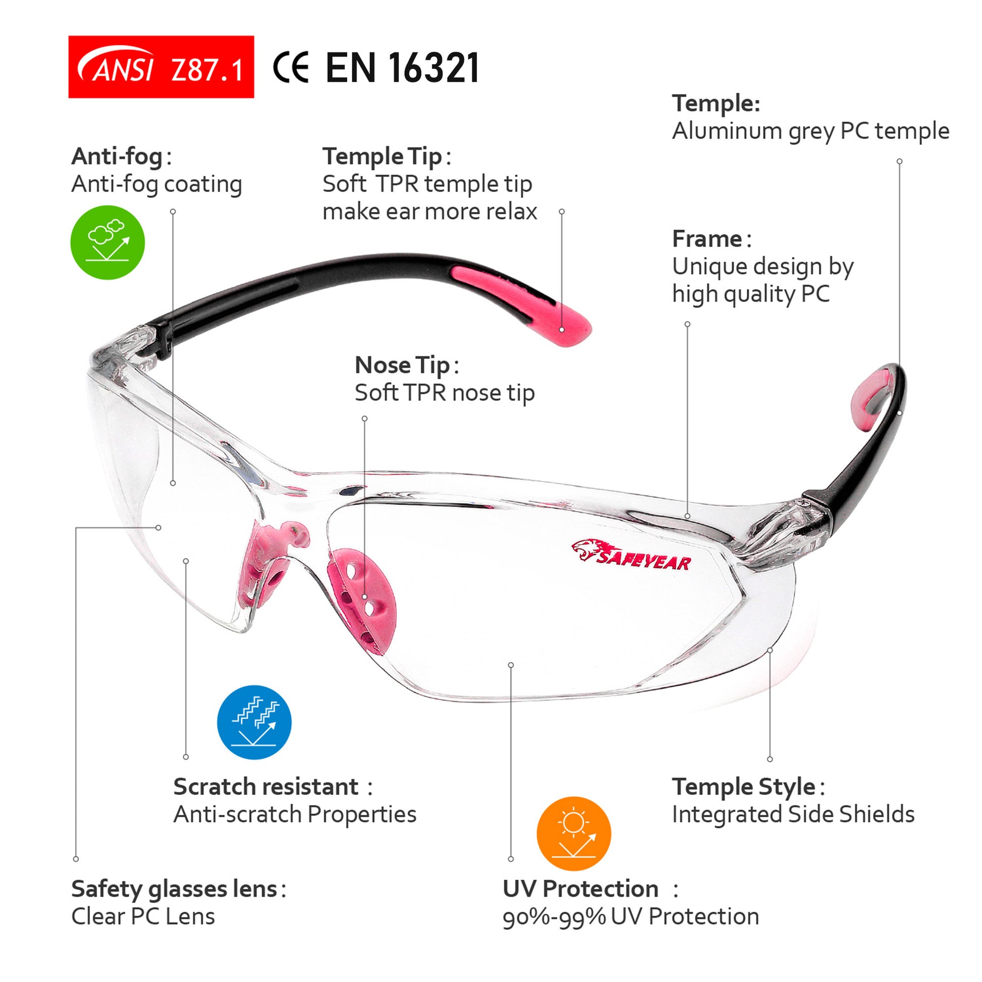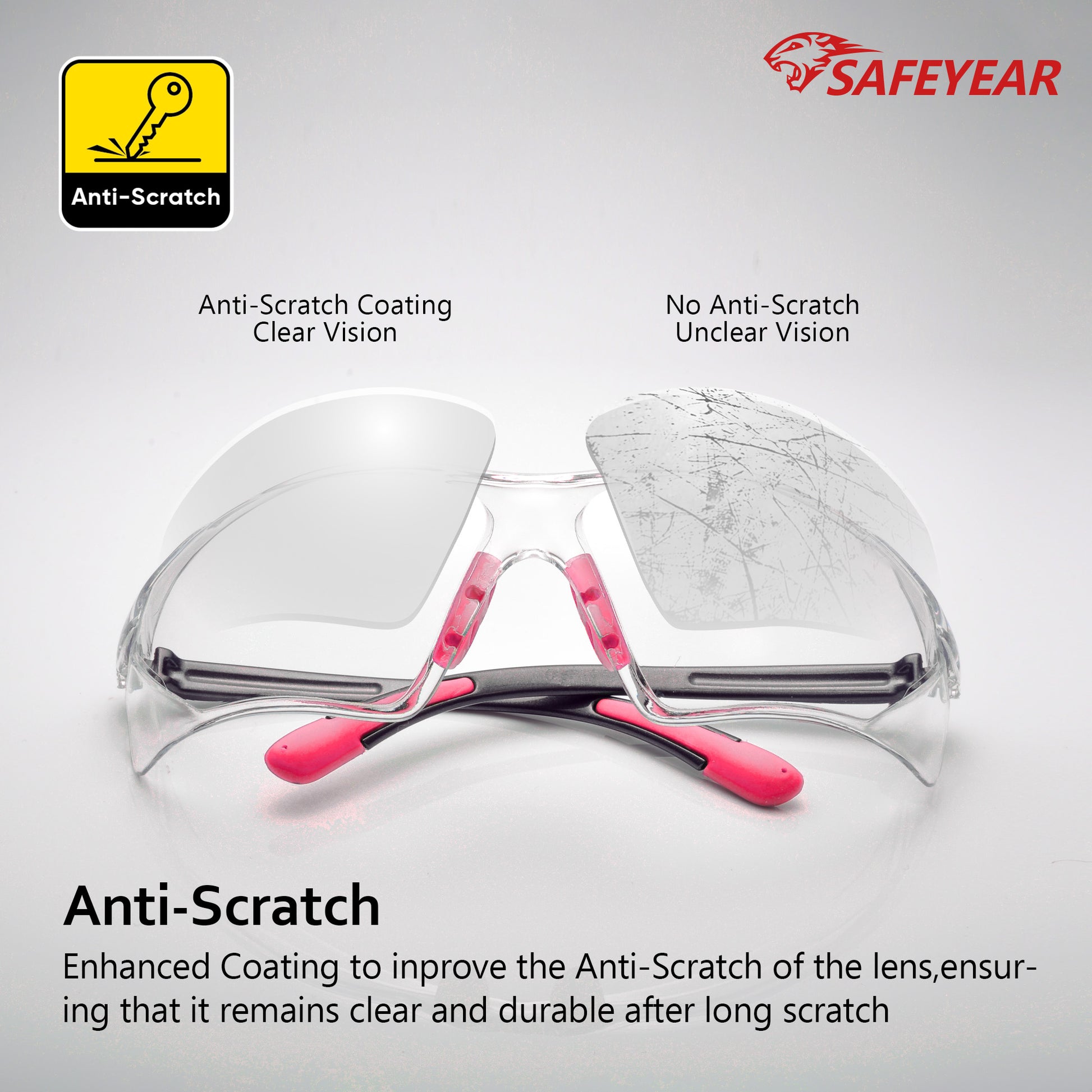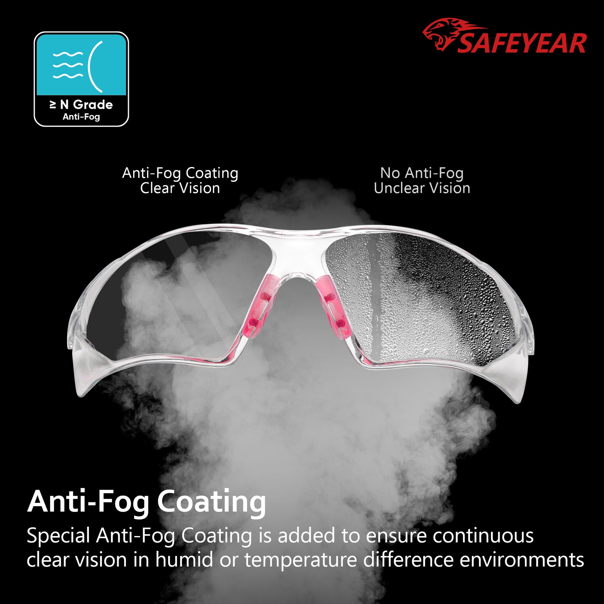 SAFEYEAR Womens Anti-Fog Safety Glasses – HD Clear Scratch Resistant Lens, Adjustable Straps, UV Protection