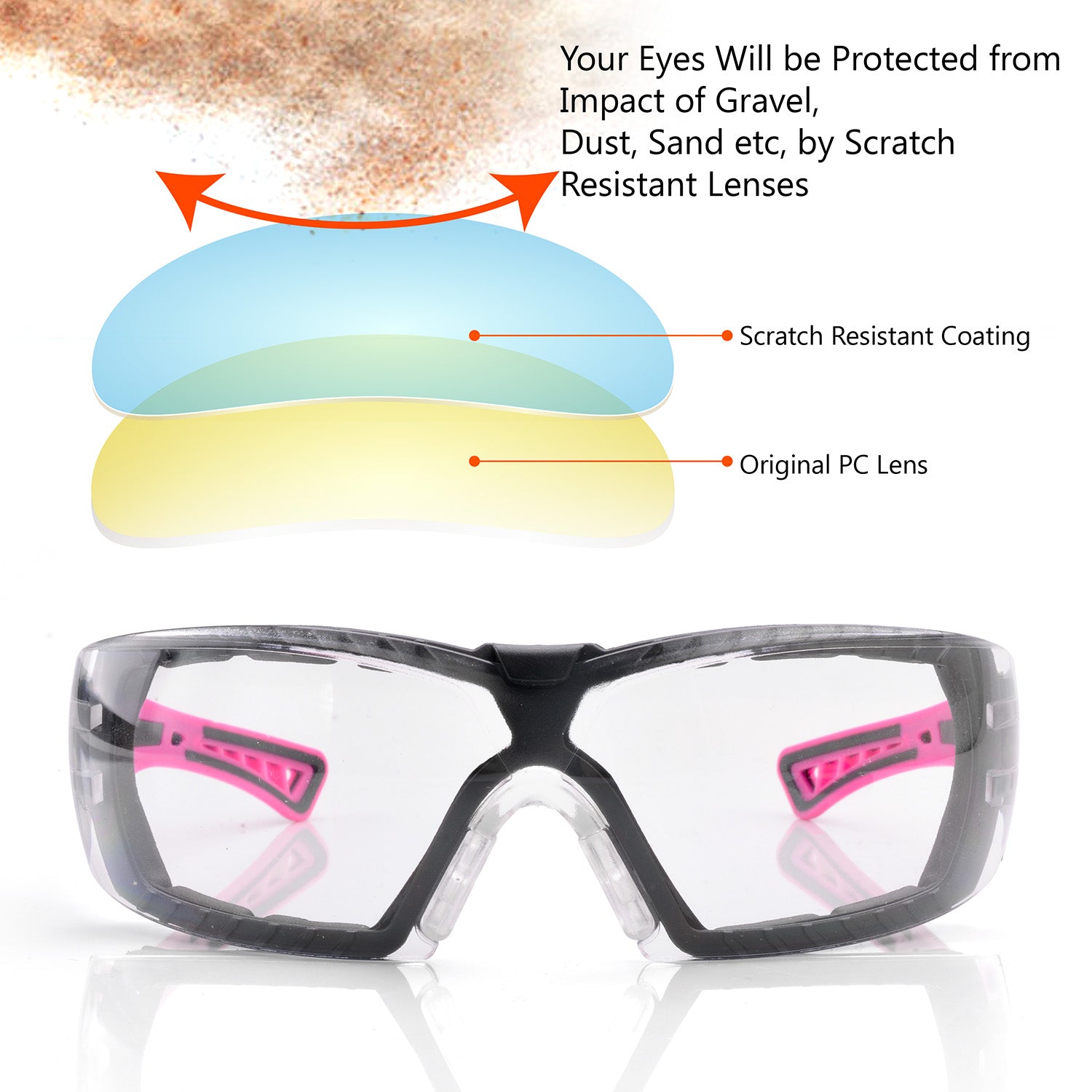 Our clear safety glasses contain anti-fog coating, the lenses are not easy to fog when exposed to water vapor. You can keep a clear view even if you wear it continuously for one day. Choose SAFEYEAR anti fog safety glasses to make your work and life more colorful!